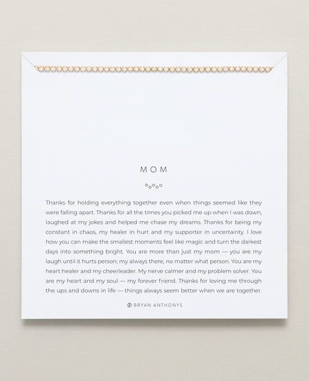 With hundreds of styles and designs, and hundreds of different messages, it’s easy to find just the right piece that explains your relationship, like this beautiful tennis bracelet for mom. (Also available on Amazon).