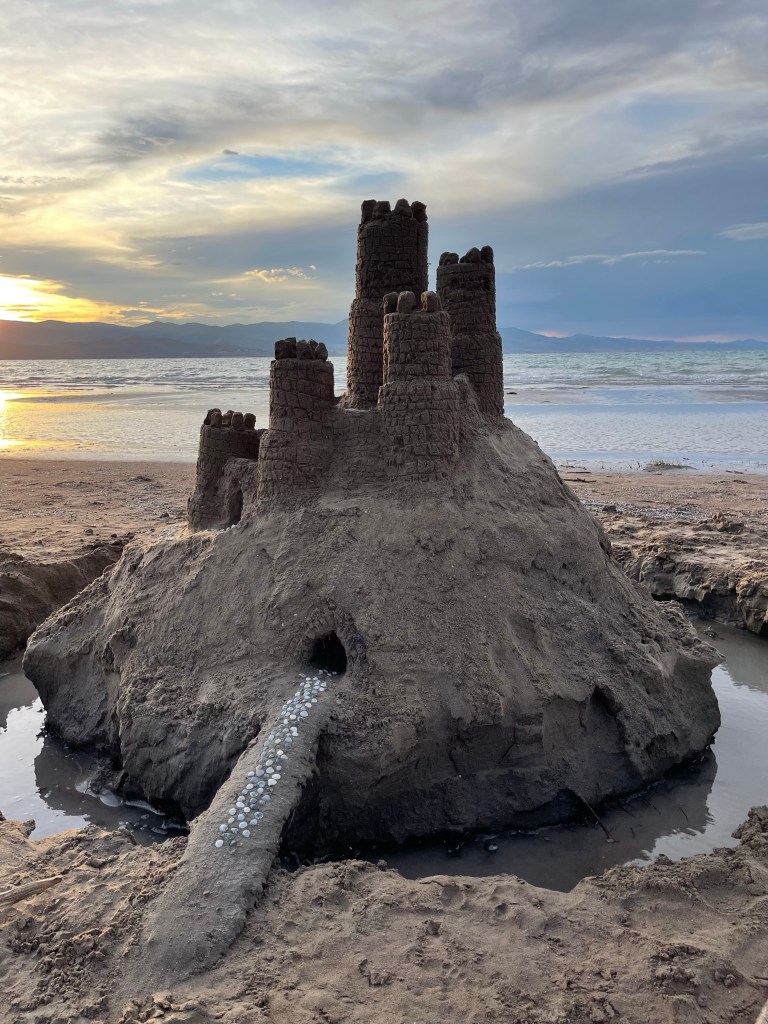 I was proud of my husband for not giving up simply because he didn’t finish first. With some time I joined in and started helping him build; searching out seashells to decorate the castle drawbridge and carving out bricks into its sides with a piece of driftwood.